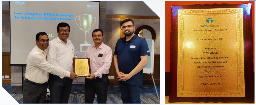Recognition of Building a resilient supply chain for BIW parts and achieving zero down time” by Tata Motors at the event held in Goa on 18-19th Apr.2023